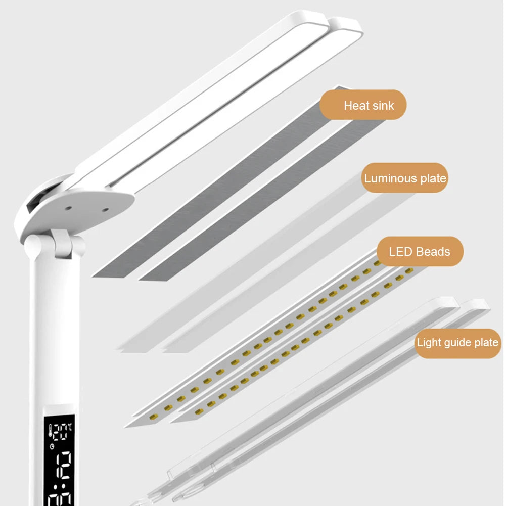LED Clock Table Lamp USB Rechargeable Desk Lamp Foldable Eye Protection
