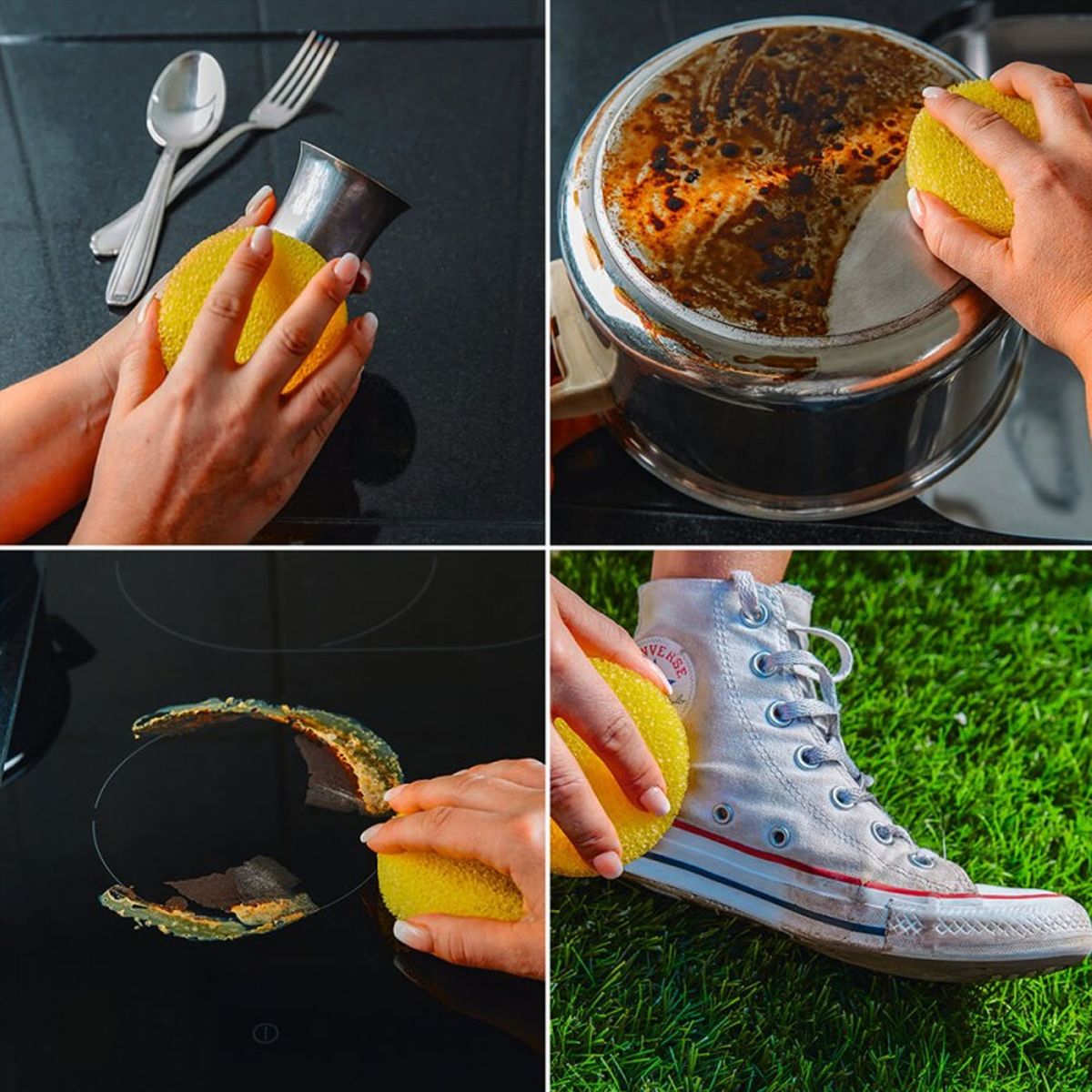 Idéale pour les casseroles en cuivre, plaques vitrocéramiques, plaques à induction, vitres intérieures de four, éviers et hottes en inox. Il convient aussi pour donner un coup de neuf aux joints de carrelage, baignoires, parois de douche, …